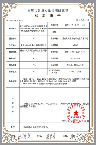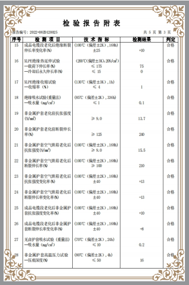 銅芯交聯(lián)聚乙烯絕緣聚烯烴護(hù)套無鹵低煙阻燃C類電力電纜核驗(yàn)報(bào)告