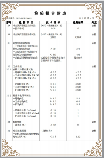 • 銅芯交聯(lián)聚乙烯絕緣聚烯烴護(hù)套無鹵低煙阻燃C類電力電纜核驗(yàn)報(bào)告
