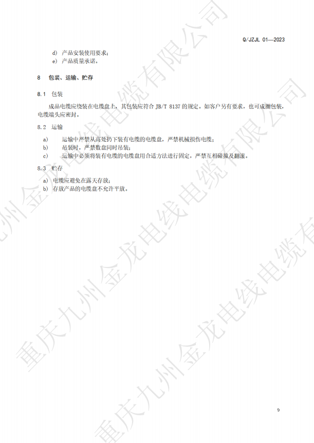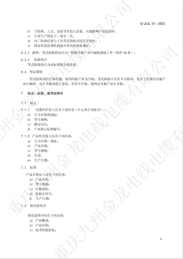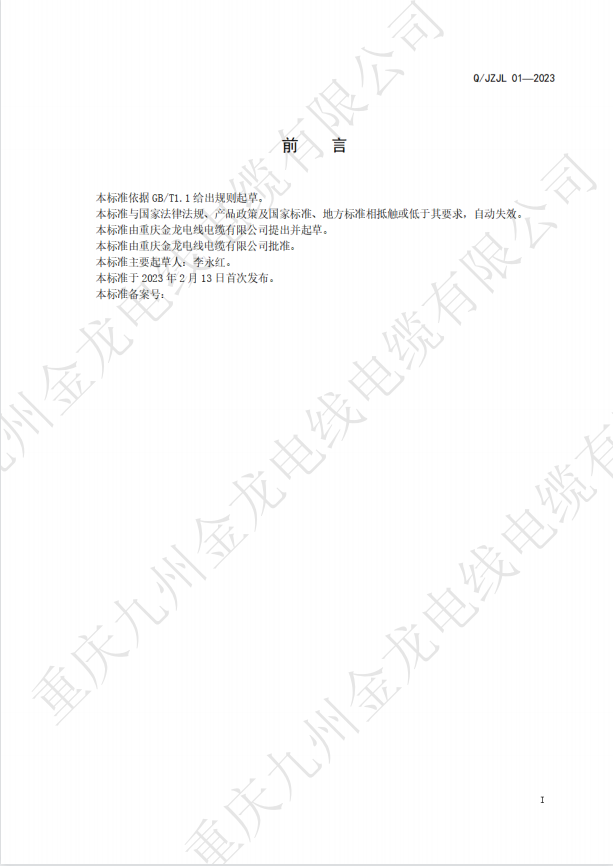 • 九州金龍丁晴橡膠電纜企業(yè)標(biāo)準(zhǔn)備案公司